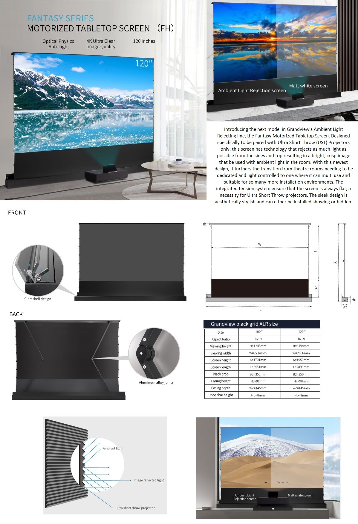Ambient Light Rejection Motorized for Mid-Long Throw (Non UST). Stock availability: 106", 120", 135" and 150" only